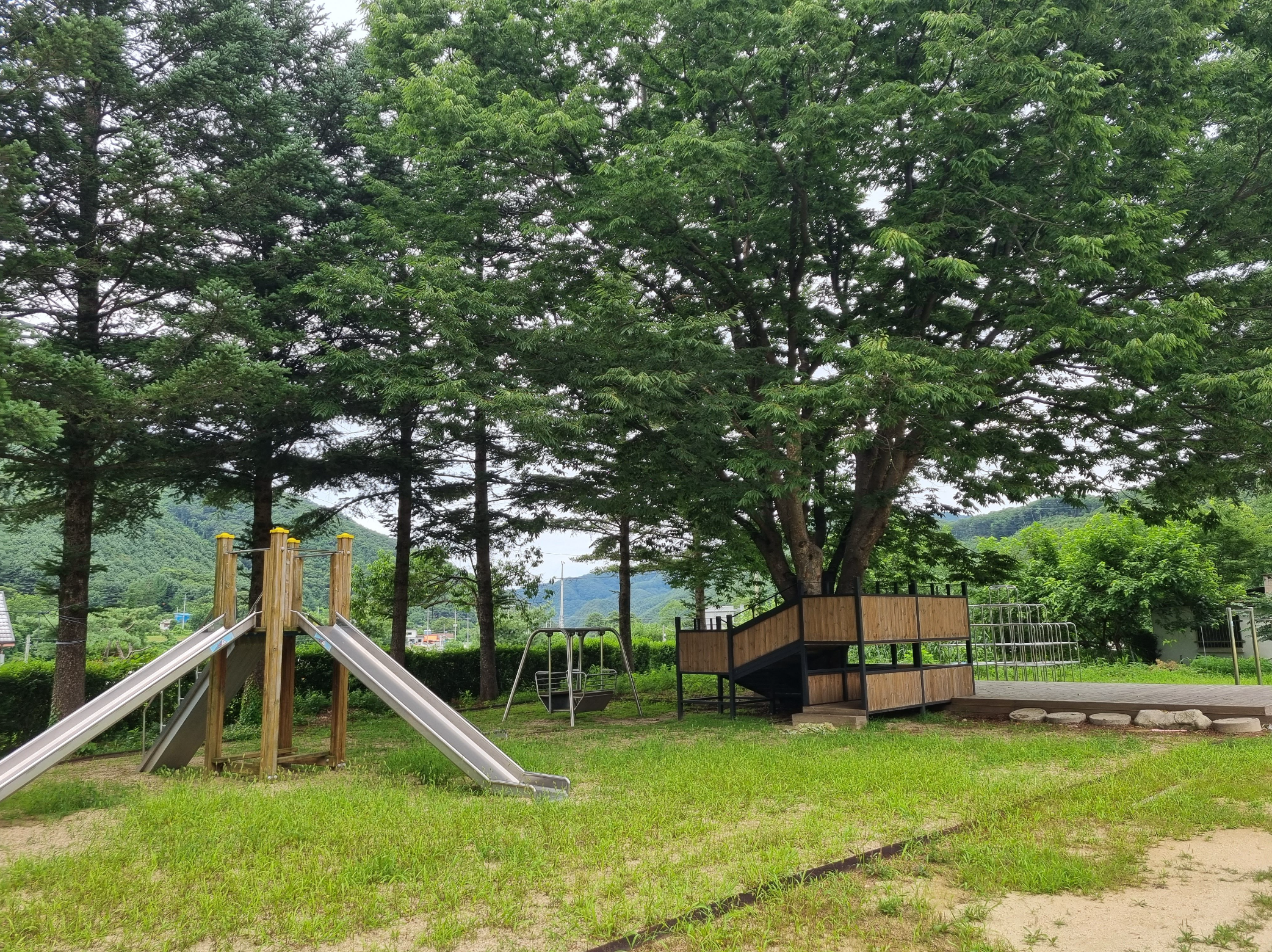 물놀이 가능한 선바위교 아래 흑천 7분 거리에 있습니다 바로 옆 학교 놀이시설 이용 가능합니다.